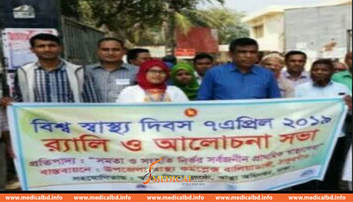 গৌতম চন্দ্র বর্মন, মেডিকেল বিডি প্রতিনিধি: প্রতি বছরের মতো এবারও নানা আয়োজনের মধ্য দিয়ে সারাদেশে বিশ্ব স্বাস্থ্য দিবস ২০১৯ উদযাপন করা হচ্ছে।’সমতা ও সংহতি নির্ভর সার্বজনীন প্রাথমিক স্বাস্থ্যসেবা’ এই প্রতিপাদ্য বিষয়কে সামনে রেখে ঠাকুরগাঁওয়ের বালিয়াডাঙ্গীতে নানা কর্মসূচীর মধ্য দিয়ে বিশ্ব স্বাস্থ্য দিবস পালিত হয়েছে। রবিবার সকালে দিবসটি উপলক্ষ্যে একটি র্যালি স্বাস্থ্য কমপ্লেক্স থেকে বের হয়ে শহরের প্রধান সড়ক প্রদক্ষিণ শেষে একই স্থানে গিয়ে শেষ হয়ে।