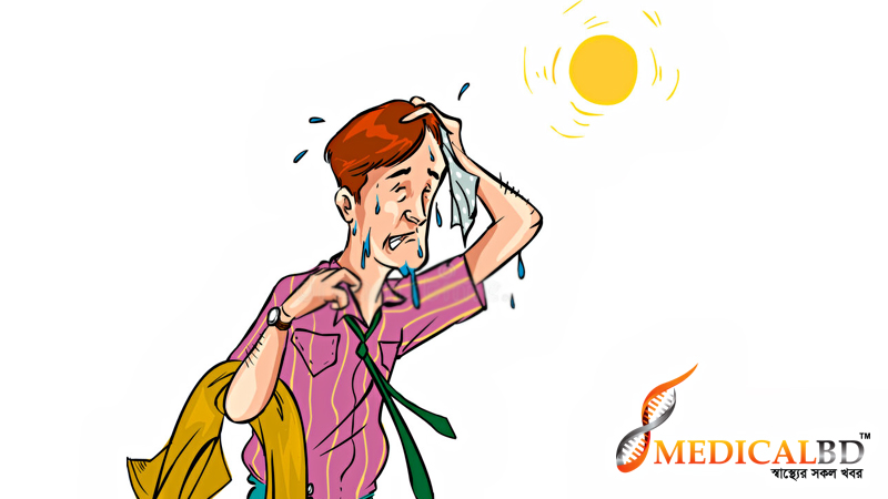 প্রচন্ড গরমে হিটস্ট্রোক হতে পারে বমি-বমি ভাব, বমি হওয়া, প্রচন্ড মাথা ব্যথা, শরীরের তাপমাত্রা বেড়ে যাওয়া, প্রস্রাব কমে যাওয়া, ঘামতে-ঘামতে এক পর্যায়ে ঘাম থেমে যাওয়া, অস্বাভাবিক আচরণ, অজ্ঞান হয়ে পড়া ইত্যাদি।