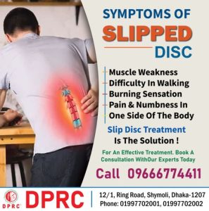 SYMPTOMS OF SLIPPED DISC in পেইন এন্ড প্যারালাইসিস January 20, 2024 0Dr. Md. Shafiullah Pradhan Physiotherapy, Disability and Rehabilitation specialist Associate Professor (IIHS),Consultant at DPRC. 12/1 Ring Road, Shyamoli, Dhaka. Phone: 09666 77 44 11 2024-01-20shafiullah prodhan tweet