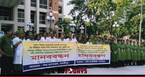হাসপাতালে পরিচালক ও ইন্টার্নী চিকিৎসক কর্তৃক যৌন হয়রানির প্রতিবাদে মানববন্ধন